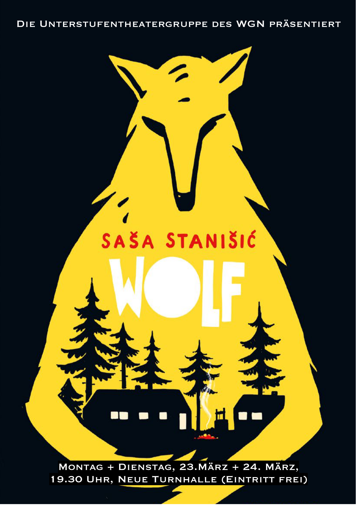 Das Unterstufentheater des Willstätter-Gymnasiums präsentiert am Montag, 23. März, und Dienstag, 24. März, jeweils um 19.30 Uhr in der Neuen Turnhalle (Eintritt frei) „Wolf“ nach dem preisgekrönten Jugendroman von Saša Stanišić.